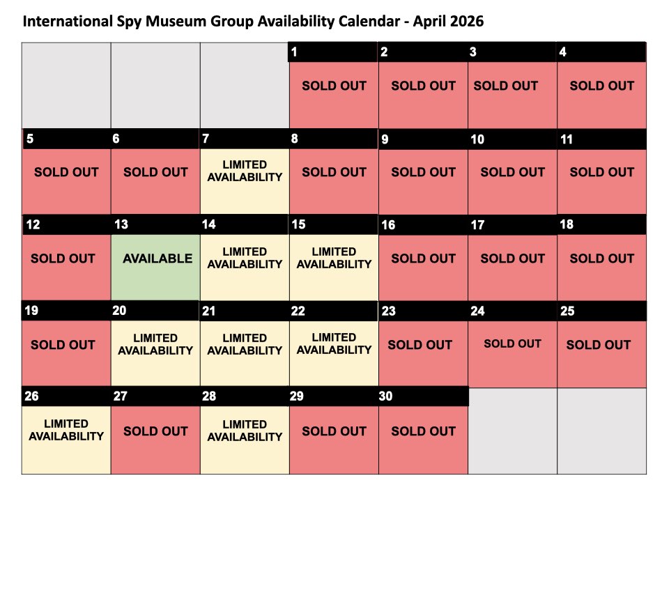 Interested in bringing a group tour to the International Spy Museum? Click below to learn more about what we offer.